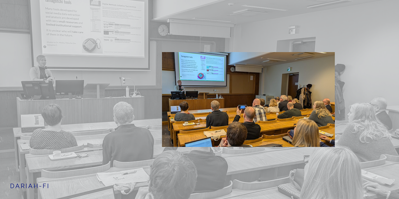 The day opened with the keynote “Dream Infrastructures for a Social Scientist” by Salla-Maaria Laaksonen (above). Her talk (watch here) caught us up with the last ten years of research with social, ‘messy’ big data and provided some guidelines as to what infrastructures social media researchers need today. Laaksonen has a long trajectory in studying the power of social media platforms in democratic, institutional and political processes through ‘computational hermeneutics’. With this concept she referred to using a range of methods derived from getting entangled in analysing big-data but also trying to understand broader phenomena in which data is embedded. Laaksonen has been active in rajapinta.co, an association that is reference community in Finland for digital social sciences. The talk provided examples of accessible but often transitory infrastructures for acquiring social media data, which Laaksonen characterised as “Tamagotxi”, digital creatures that need feeding, care, and are constantly on the verge of disappearing.
