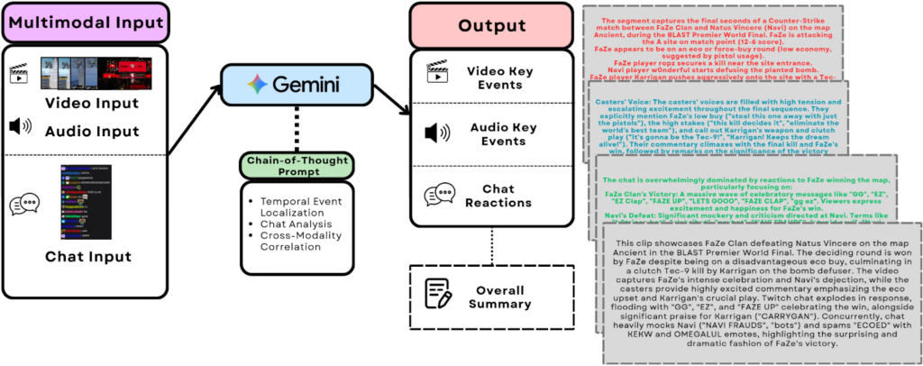 Powered by the Google Gemini family of Multimodal Large Language Models (MLLMs) and guided by a structured Chain-of-Thought prompt, our tool offers two distinct ways to process Twitch clips: