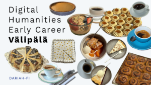 Each session starts with a brief introduction into the theme by researchers working on that topic to facilitate free-form and open conversation. We aim to build a community and space to create and find connections. The DH välipalat are organised by and for PhD and early-career researchers. We are a group of interdisciplinary folk based in Helsinki supported by DARIAH-FI, the digital research infrastructure for the social sciences and humanities.